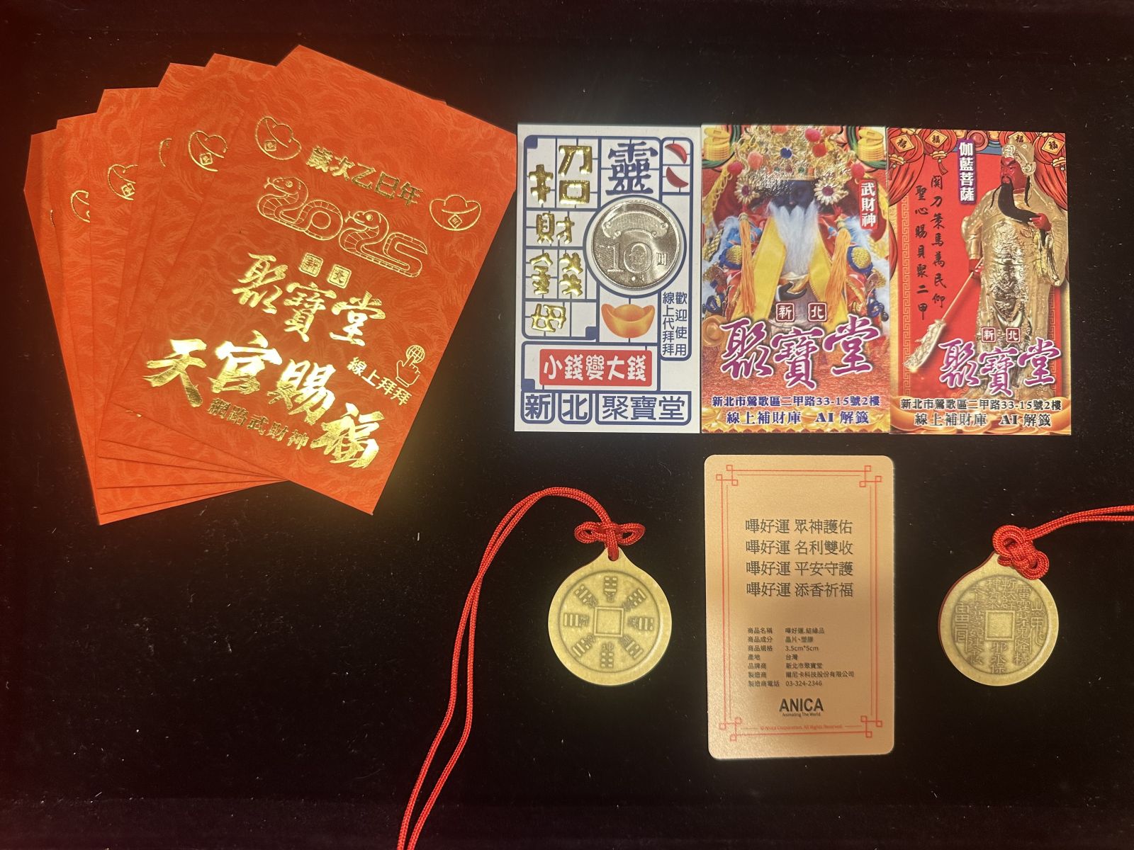 新北市聚寶堂為目前最為線上化的一間財神恭奉處, 除了先前介紹的線上祈願及線上名片向神明許願 今日亦推出山鬼花錢結緣卡(原型直徑3.5x3.5公分) ,別於傳統任何關於神明或開運的小物皆為一張圖片或內含符紙,今日ㄅㄧ好運卡是內藏NFC晶片卡, 只要將手機鏡頭靠近卡片 ,即可開啟連結至聚寶堂網頁內容,