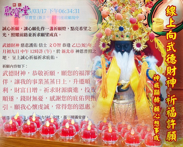 線上向武德財神 祈福許願|線上代燒金紙|台北線上代燒金紙